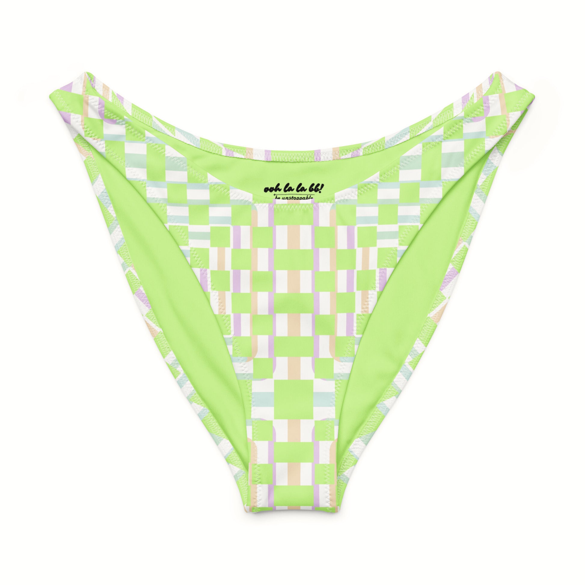 Featuring the bold green checkered pattern layered with soft pastel details, it carries the playful yet sophisticated energy of the collection.